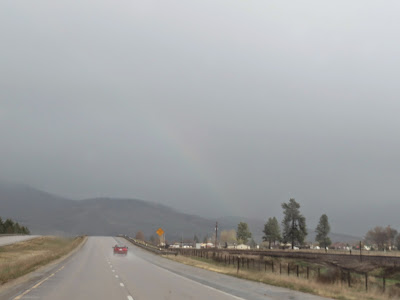 It was hard to see through the windshield, this is how hard it was raining. I almost fell asleep sitting on the passenger's seat listening the kid's radio station when I saw something in the grey picture in front of me, something colorful. I grabbed my camera and took a picture. In the grey mass and sky tears' drops I saw a little rainbow.